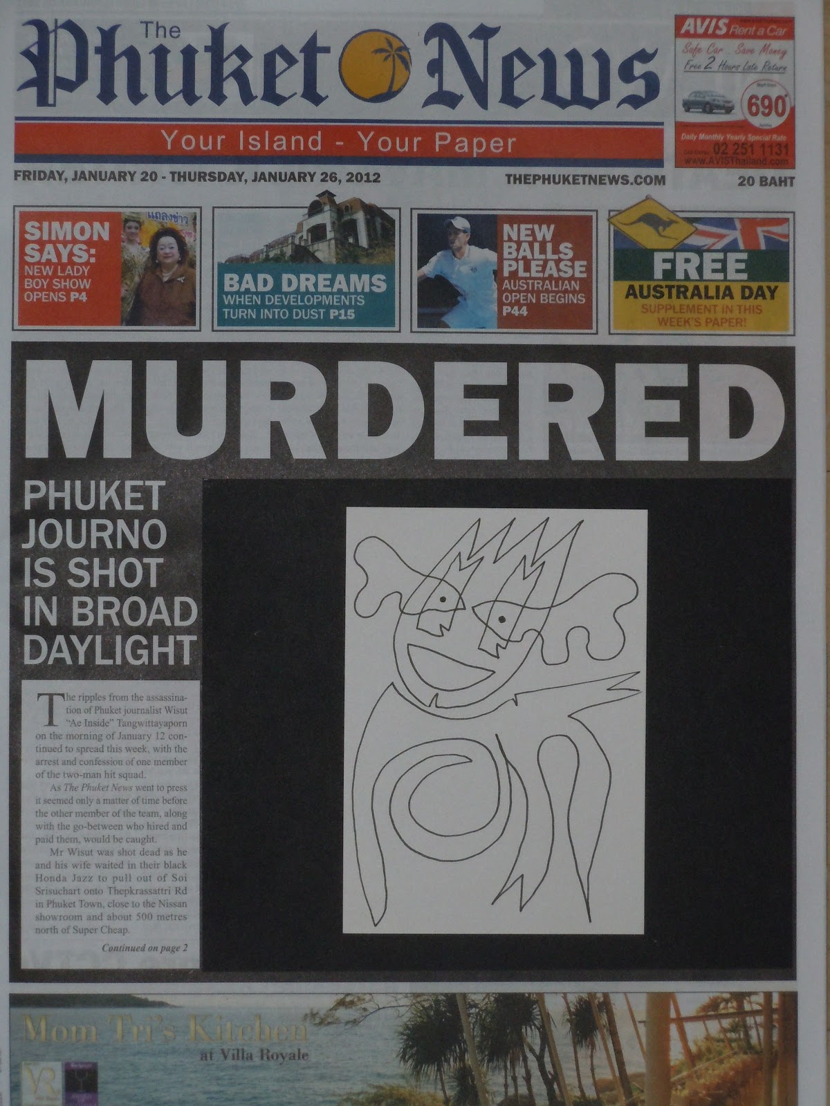 ink on white cardboard on black cardboard on phuket newspaper, 2012
